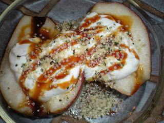 Lori’s Warm Sweet Pears with Lemon Yogurt and Hemp Seeds