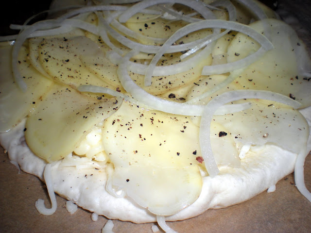 PIZZA 2: Inspired by “The Best Thing I Ever Ate” on the Food Network, Yukon Gold Potato Pizza from Five Points restaurant. This pie included mozzarella cheese, THINLY sliced Yukon gold potatoes, white onions, and cracked black pepper.