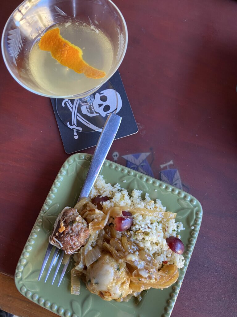 The Sidecar cocktail paired with Chili Lemon Couscous with pistachios and grapes.