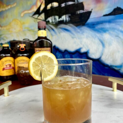 This rum-based drink boasts rich fig preserves and ginger beer, with tangy lemon to balance the sweetness. This is the perfect drink for an afternoon sipping cocktail.