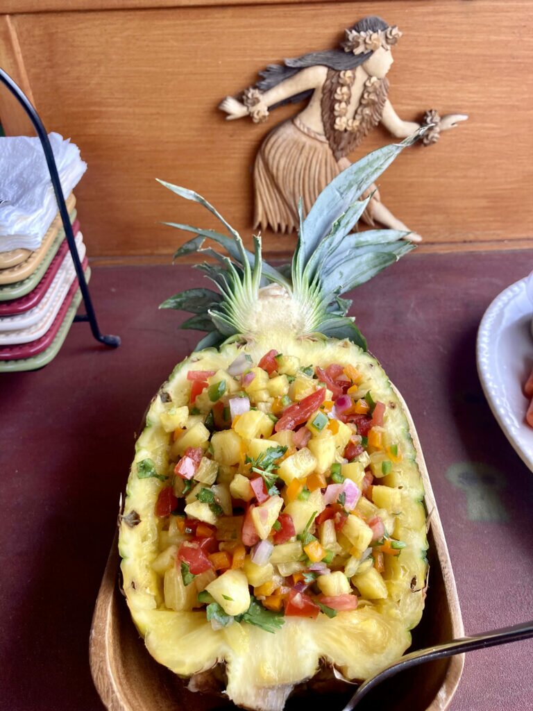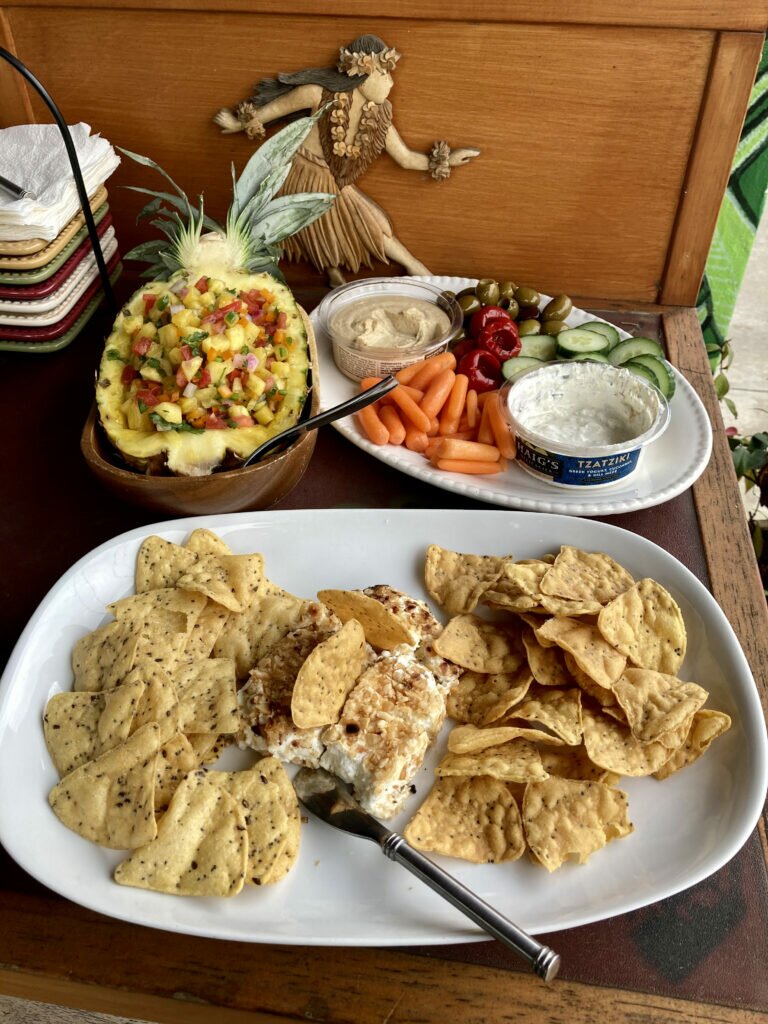 Paired with our Dark & Stormy’s, we cored a pineapple, filled it with sweet and spicy bits, and thew it all back into the pineapple shell for a fun way to dip and sip. Here’s the recipe we used!
