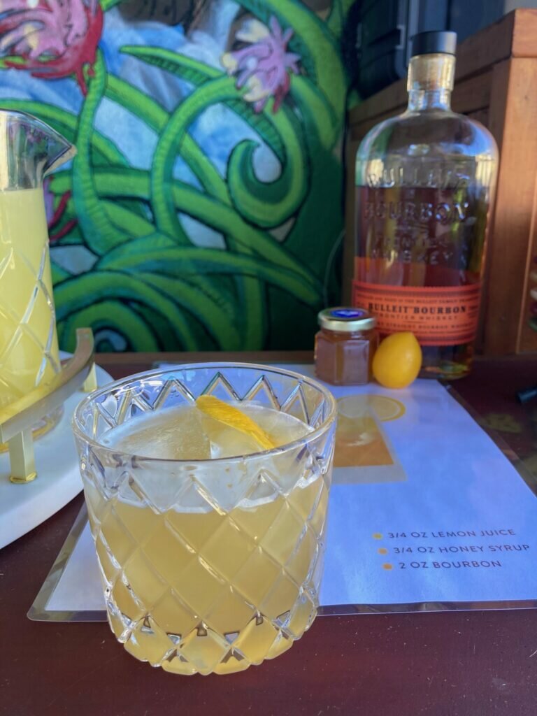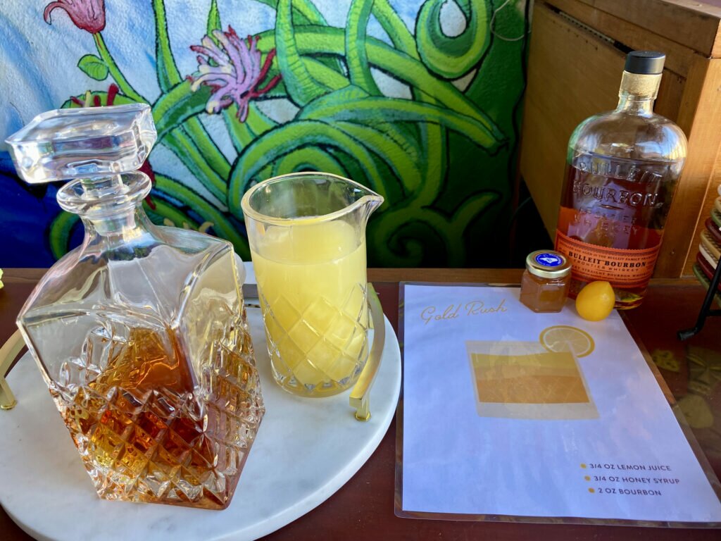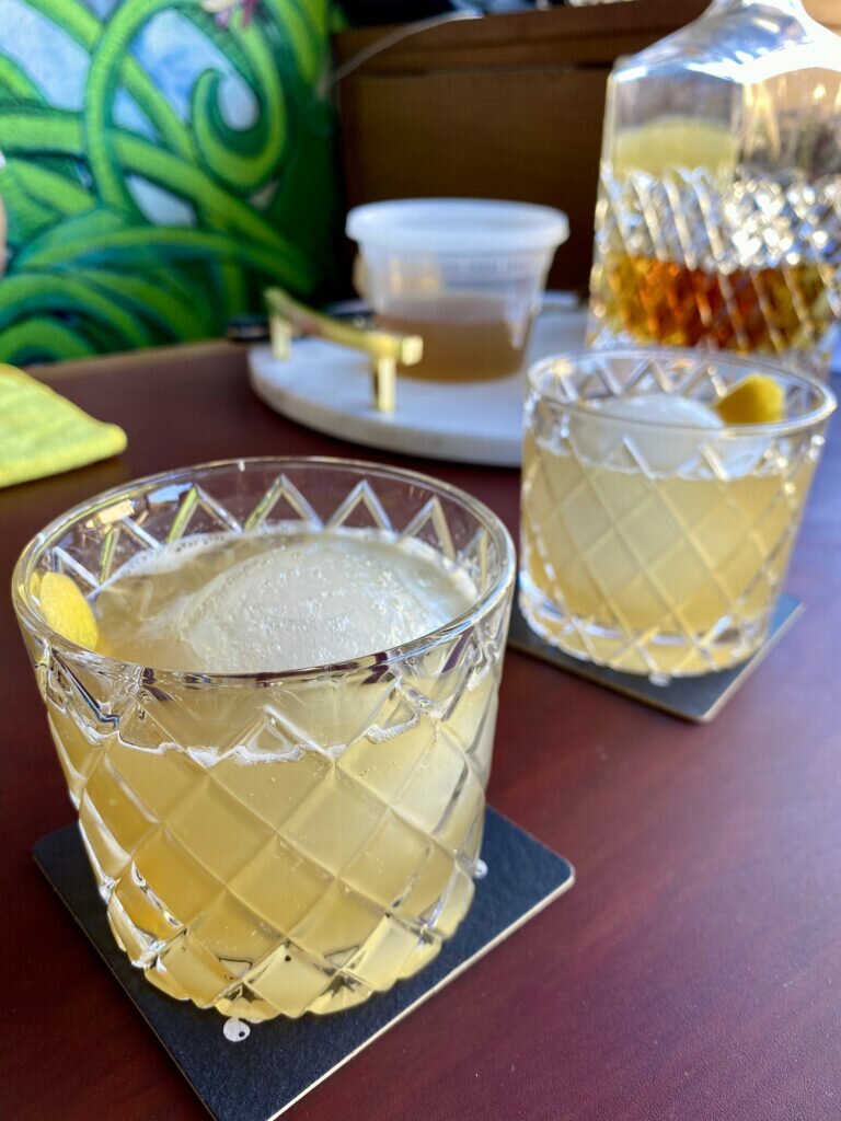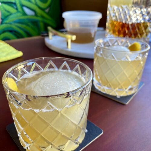 Join our cocktail hour with The Gold Rush paired with Lemon Blackberry Bars. Tangy, sweet, sour, spicy, delicious in every sip and bite.